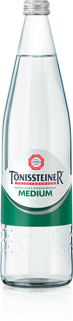 Angenehm prickelndes Mineralwasser mit wertvollen Mineralien aus der ältesten Römerquelle Deutschlands, das ist TÖNISSTEINER Medium.